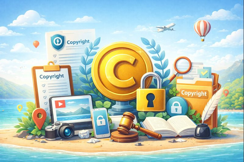 حقوق انتشار فقط شامل متن نیست. تیترها، ساختار راهنمای سفر، نحوه دستهبندی مقصدها، چکلیستها، برنامه پیشنهادی روزانه، انتخاب و ویرایش تصاویر، اینفوگرافیکها، نقشهها، چیدمان صفحه، و هویت بصری وبسایت نیز بخشی از دارایی محتوایی محسوب میشوند. دسترسی رایگان کاربران به محتوا، به معنی آزاد بودن کپیبرداری یا بازنشر کامل نیست.